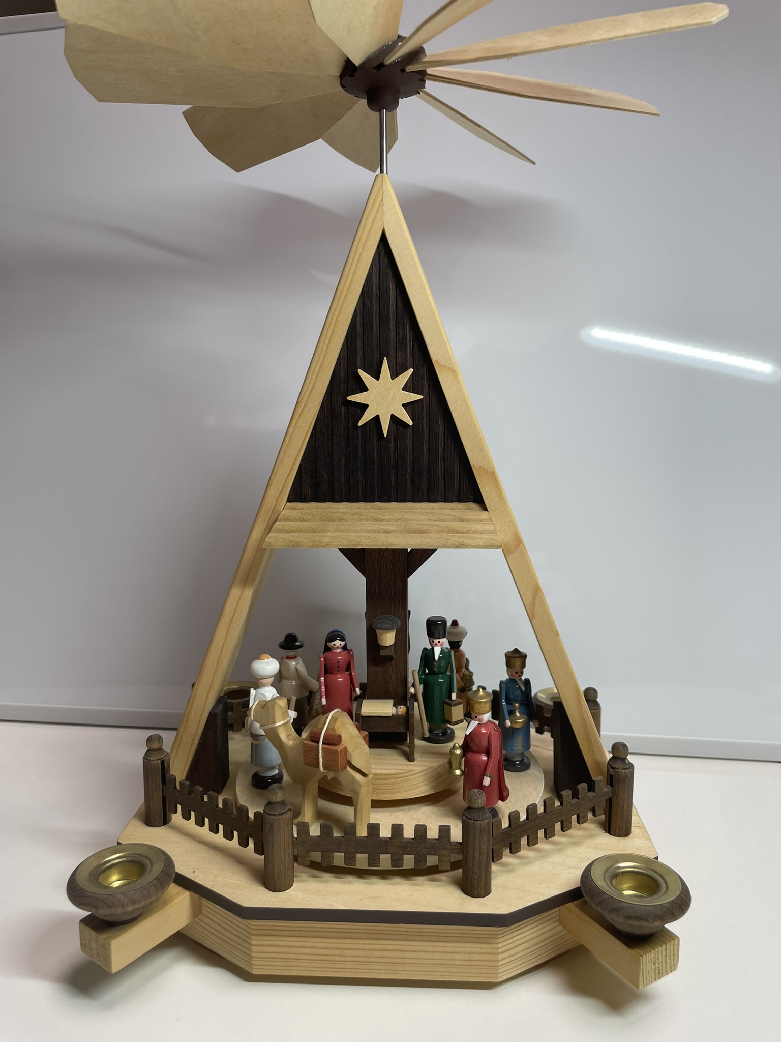 (感想)今回紹介するオーナメントは、有馬温泉を訪れたときに有馬玩具博物館で購入したものです。四隅にろうそくを立て火をつけると上昇気流で上のプロペラが回り、人形も回転する仕掛けです。人形もその動きもきれいで夫婦で即決で買いました。