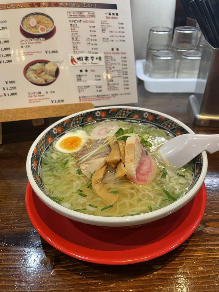 メニュー: 塩ラーメンの他にも、今風の味を調和させた多彩なメニューが揃っています。 (感想)私たち夫婦にはスープがあっさりしすぎて合いませんでした。ただ、地元の人たちで混んでいましたので好みによるところが大きいのでしょう。
