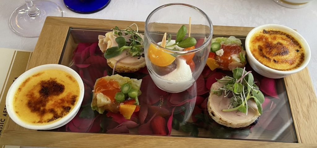 ラ・メゾン・キオイでは、期間限定の「ローズアフタヌーンティー」が開催されています。バラの庭園に囲まれた優雅な雰囲気の中で、季節の食材を使ったフレンチやスイーツを楽しめるプランです。デザートにはバラジャムが添えられ、香り高い紅茶や約10種類のお茶が選べるのも魅力です。