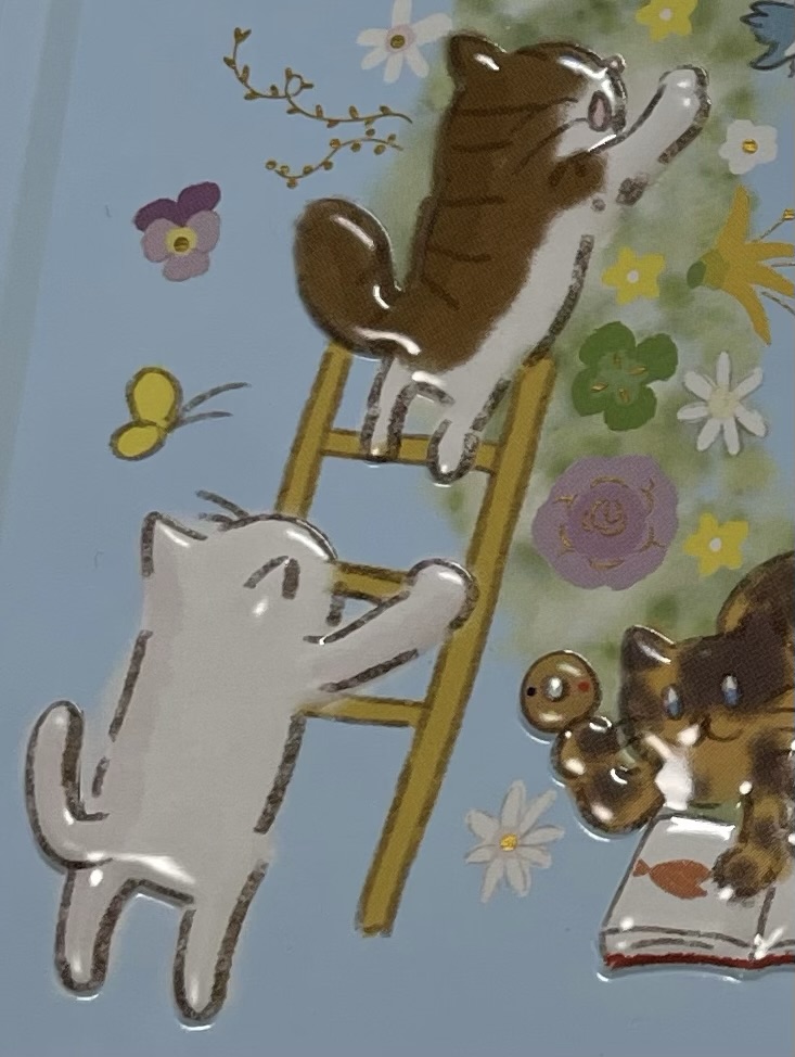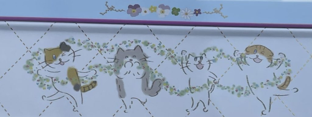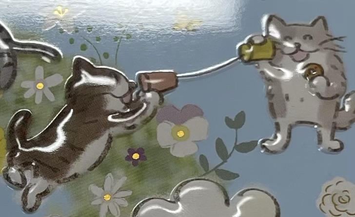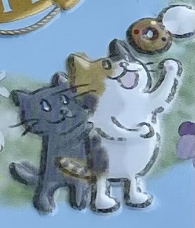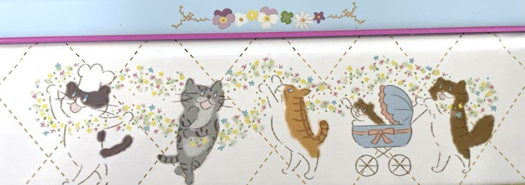 (感想)クッキーを入れる缶はもちろん、包装紙、中敷きまで可愛いねこが描かれています。また、中には「まるちゃんとちいさな輪」というお話の冊子も入っています。ねこが好きな人はたまらないです。