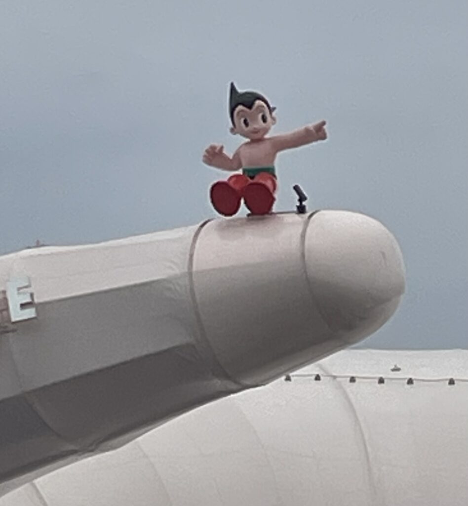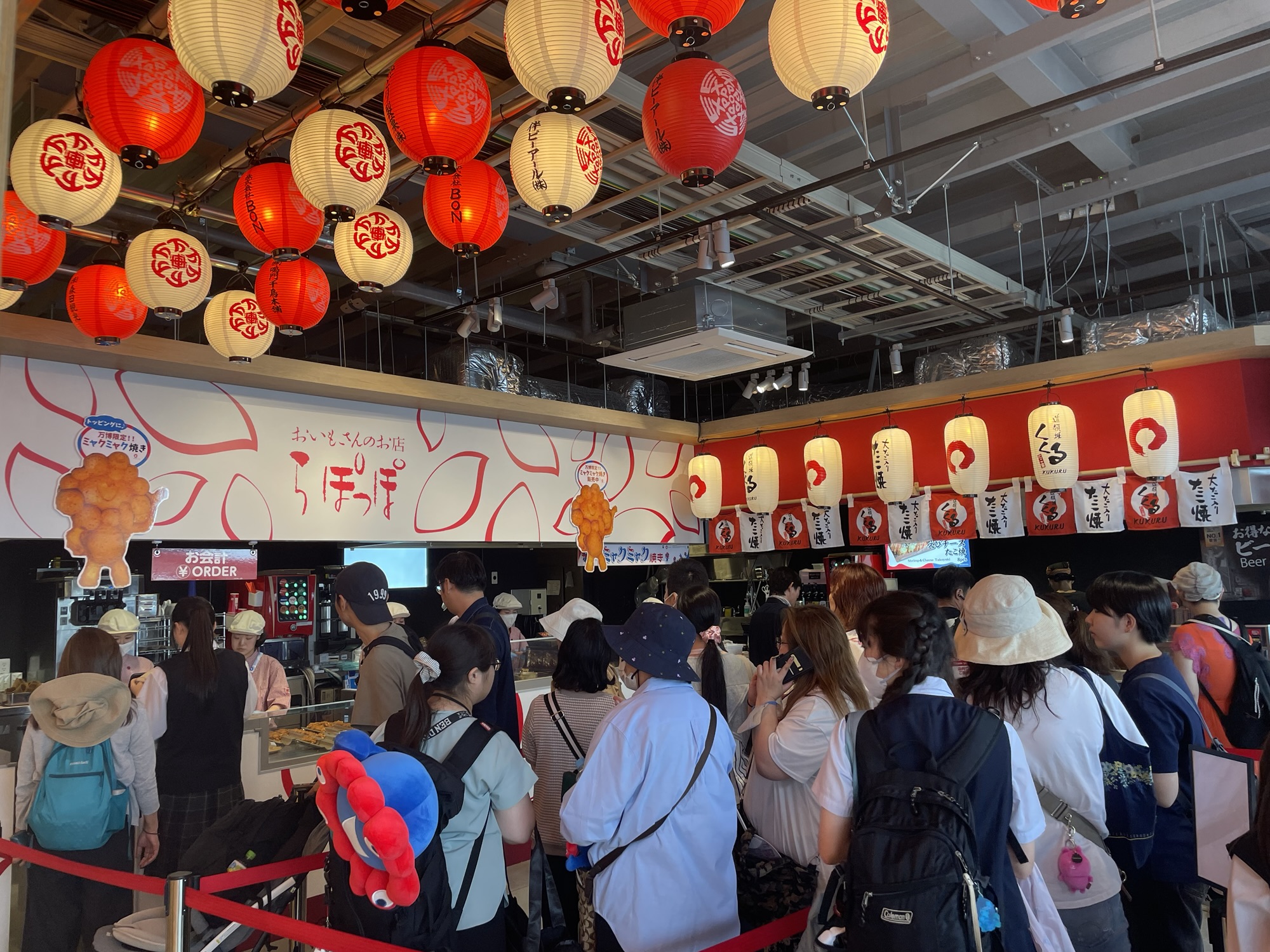 リングに向かう通路にミャクミャク像があります。かなりの人が記念撮影をしていました。