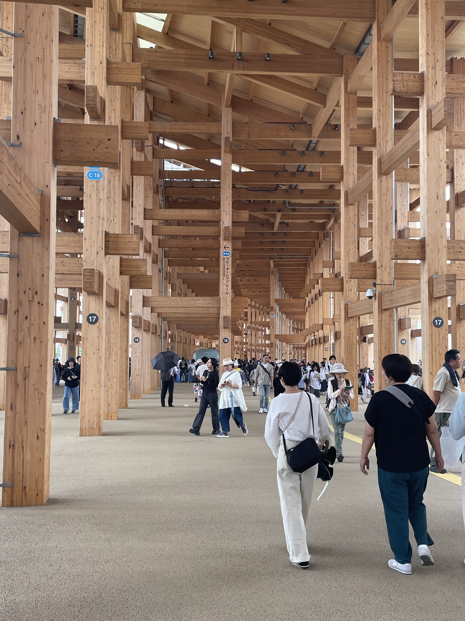 関西万博の「大屋根リング」は、世界最大の木造建築物としてギネス世界記録に認定された巨大構造物です。直径約675m、高さ最大約20mのリング状の建築で、スギやヒノキなどの木材を使用し、来場者が歩けるスカイウォークも備えています。このリングは、展望台やイベント広場の機能を兼ね備え、万博の象徴的な存在として設計されました。