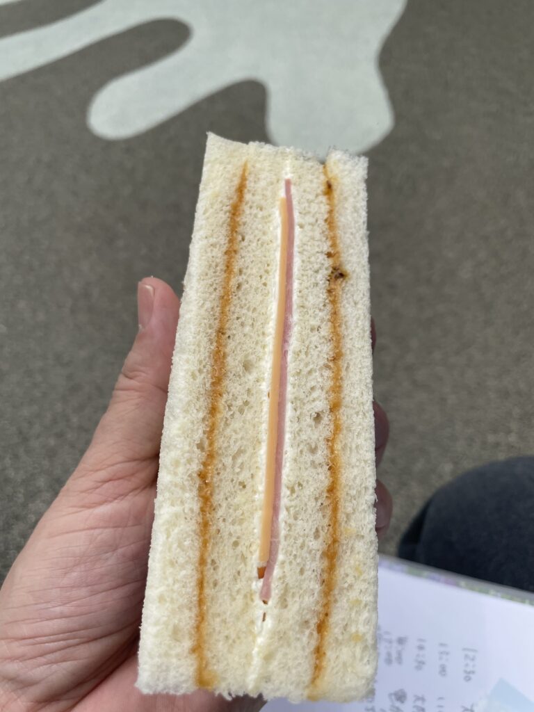 台湾の技術を紹介する「TECH WORLD館」でお昼を買いました。楽しみにしていたルーローハンは、私の1人前で売り切れてしまいました。仕方なく、「神農生活の洪瑞珍(サンドイッチ)」を買いました。おいしくもまずくもなく、880円は万博値段。
